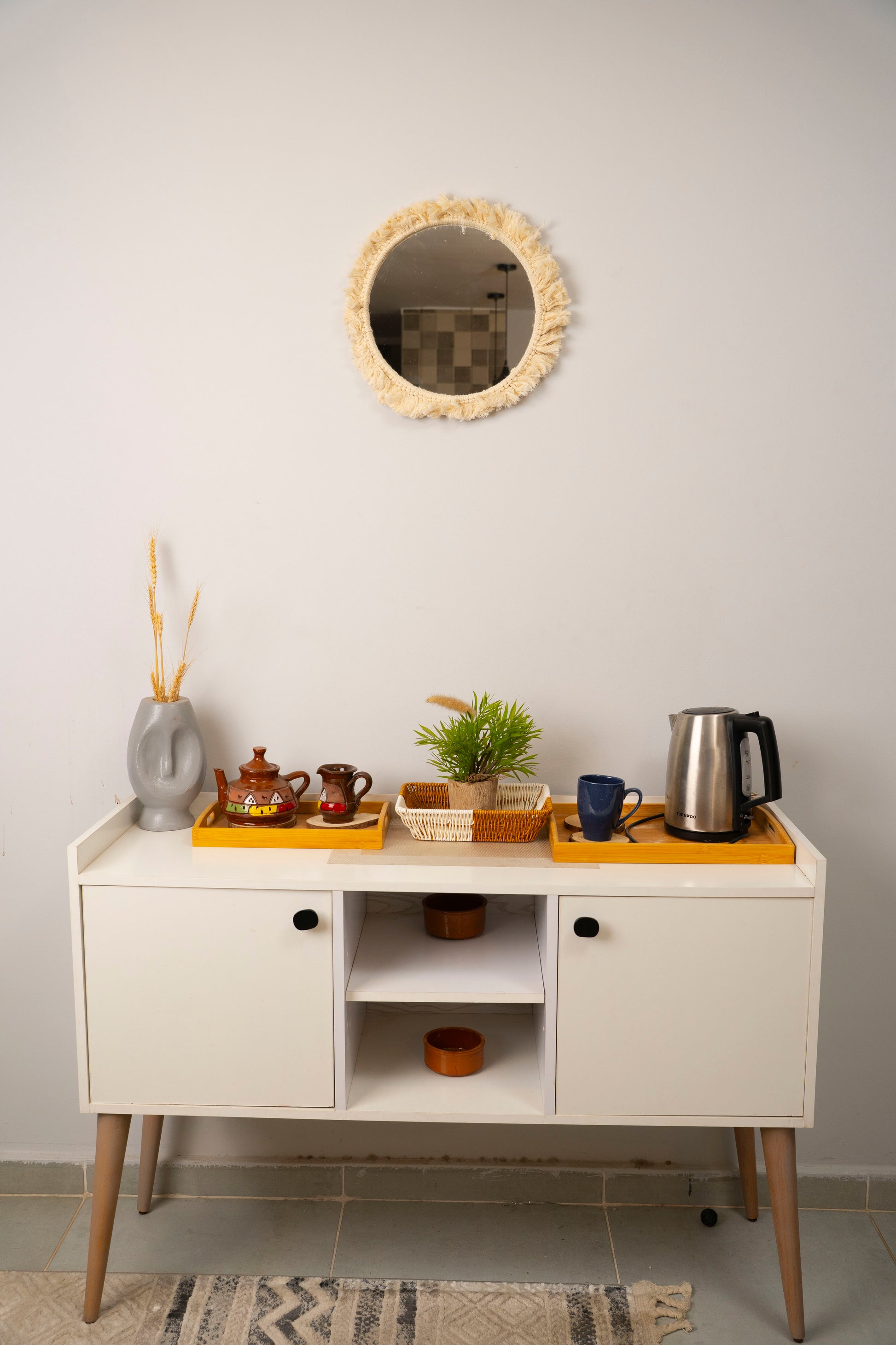 This isn’t just a mirror—it’s a piece of art! Featuring a round shape framed with handwoven macramé cotton, it adds a soft bohemian touch to any wall.