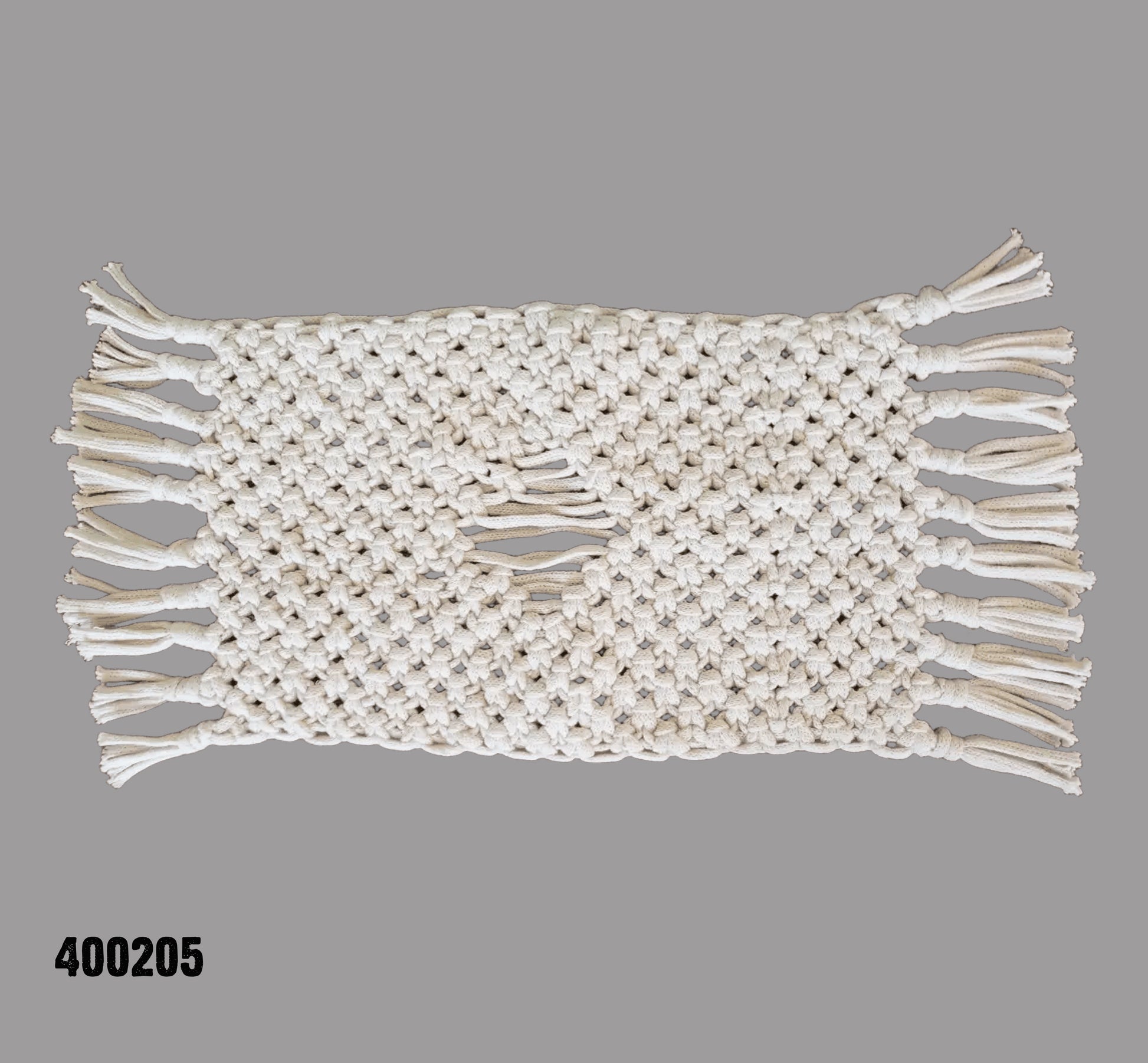 Handcrafted from strong cotton macramé threads, this piece adds simple elegance and a unique charm to any table, sideboard, or nightstand. Its soft, bohemian style brings warmth and beauty to every corner of your home.
