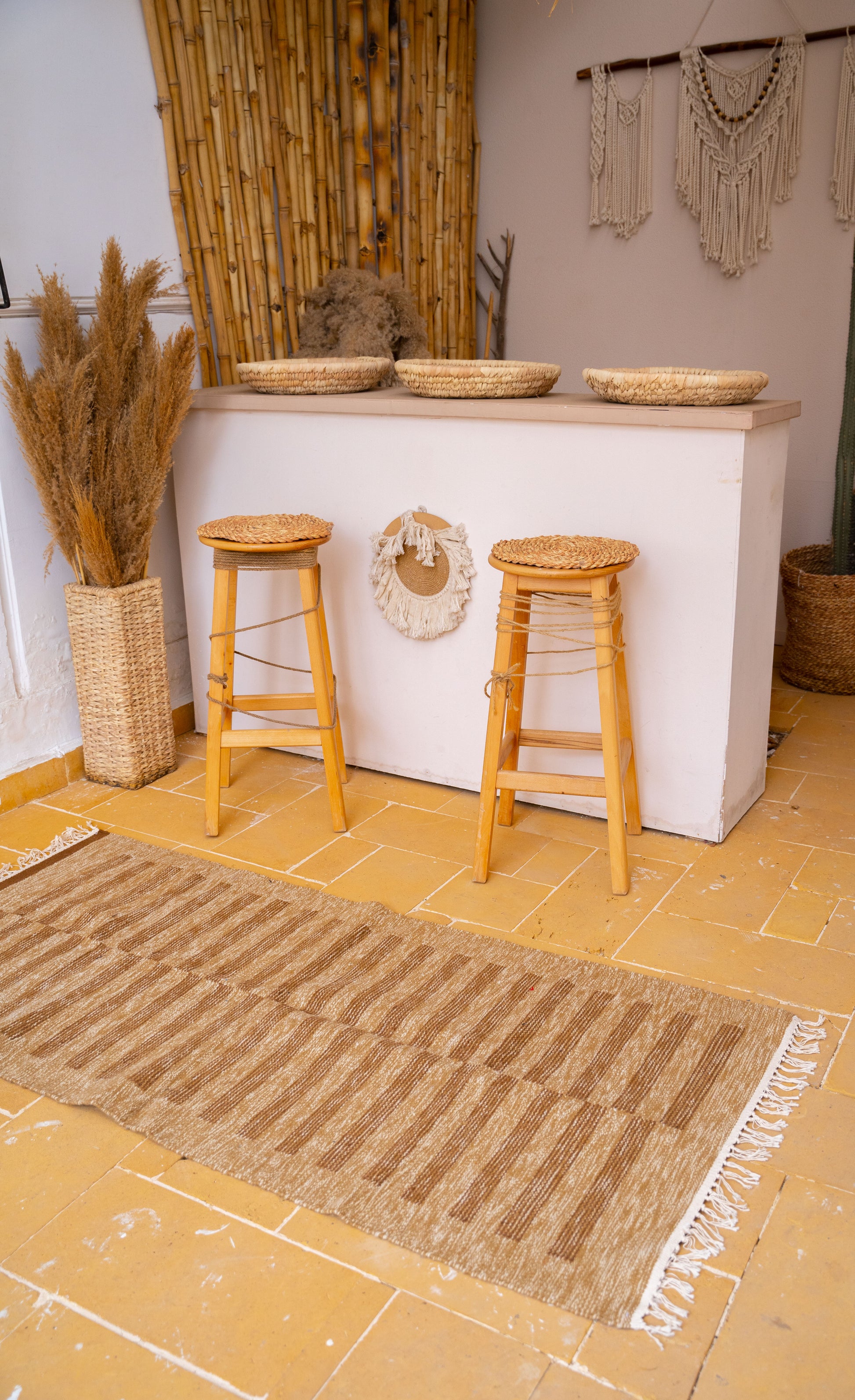 A 100% natural wool rug, masterfully handwoven with care. Its soft, heavy texture is built to withstand daily use, bringing comfort and warmth to any space. Perfectly suited for a variety of interiors and floor types.