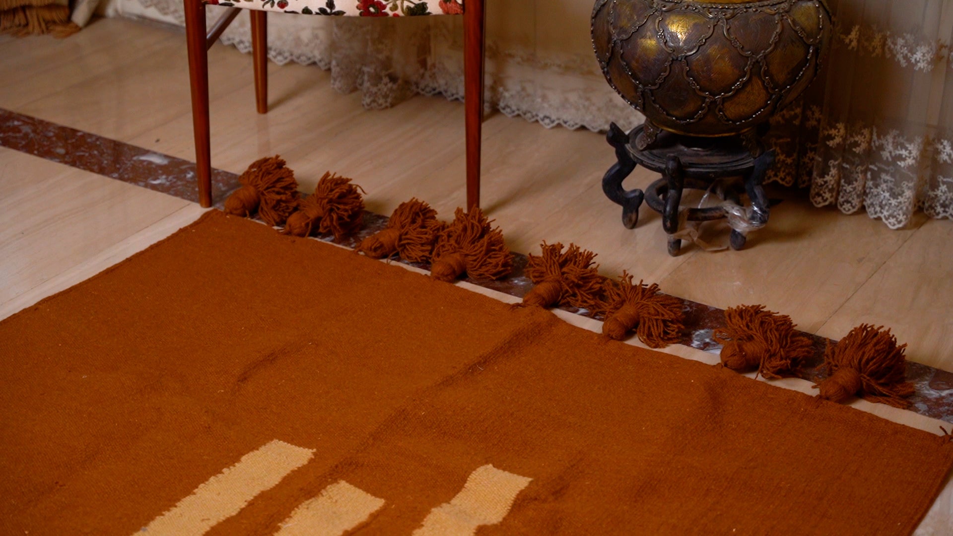 A 100% natural wool rug, masterfully handwoven with care. Its soft, heavy texture is built to withstand daily use, bringing comfort and warmth to any space. Perfectly suited for a variety of interiors and floor types.